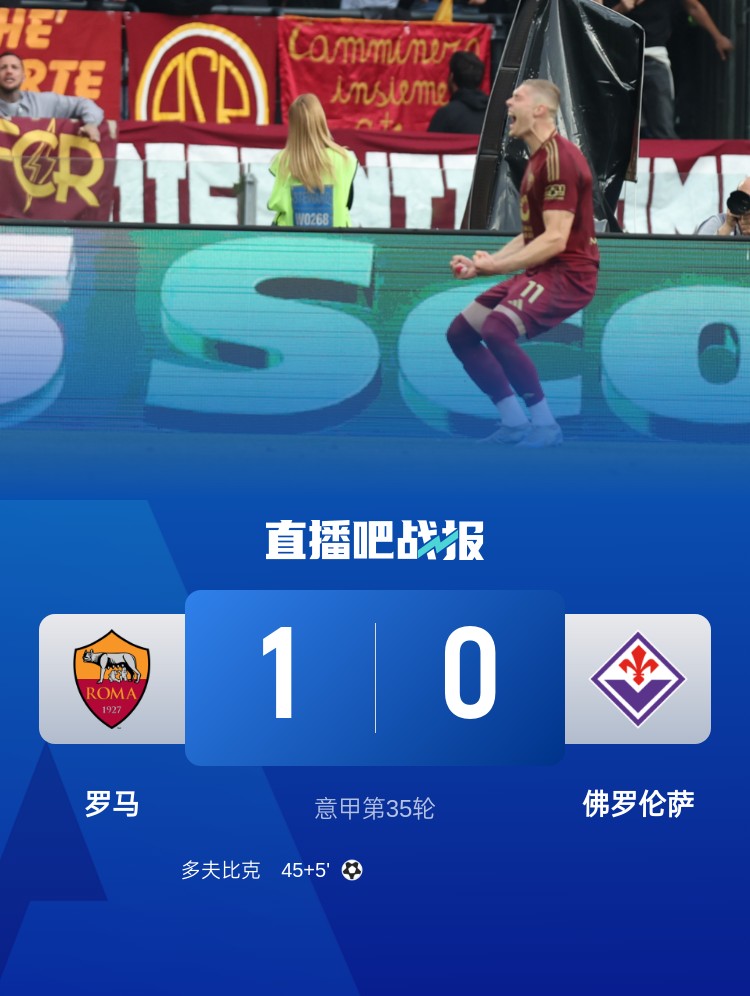 意甲第35輪,羅馬1-0擊敗佛羅倫薩,迎來聯賽19輪不敗。上半場,多夫比克接力頭槌助羅馬取得領先;下半場,斯維拉爾連續精彩撲救力保球門不失。