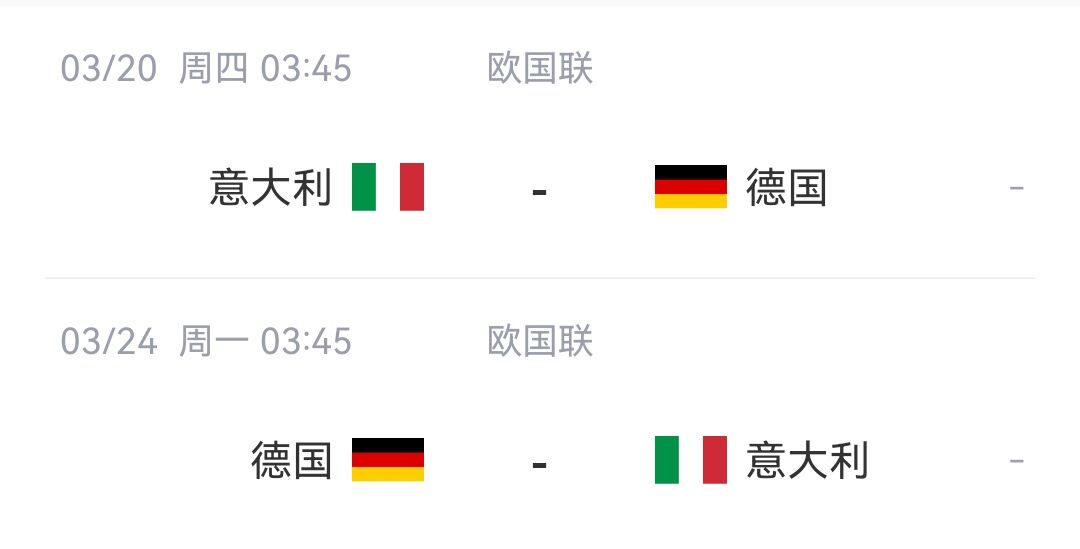 此前的歐國聯(lián)小組,德國隊(duì)力壓荷蘭、匈牙利和波黑以小組第一晉級淘汰賽,在1/4決賽中,他們要面對的是意大利隊(duì)。德國與意大利將在北京時(shí)間3月20日和3月24日凌晨進(jìn)行兩回合主客場的交鋒。